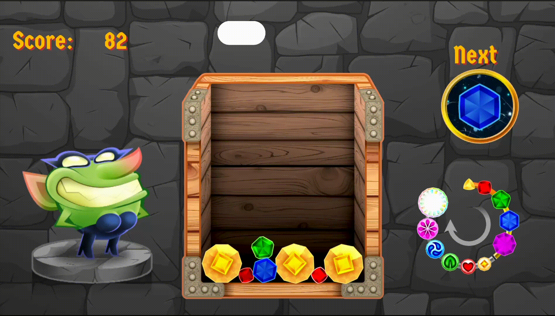 ​This is a Suika-style game in which the player merges gems with like-pieces. The goal of this project was to gain a deeper understanding of the patterns and systems in the popular physics-based puzzle game.